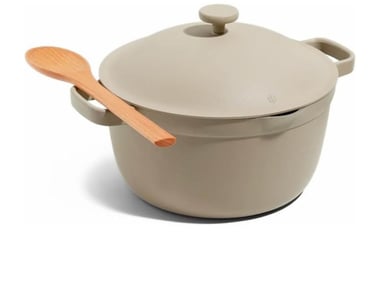 Meet the pot that does it all — boil, steam, bake, braise, and roast — all in one beautiful, nontoxic design. The Our Place Perfect Pot makes everyday cooking easier with its nonstick ceramic coating (PTFE- and PFOA-free), lightweight build, and thoughtful details like a spoon rest and strainer lid.